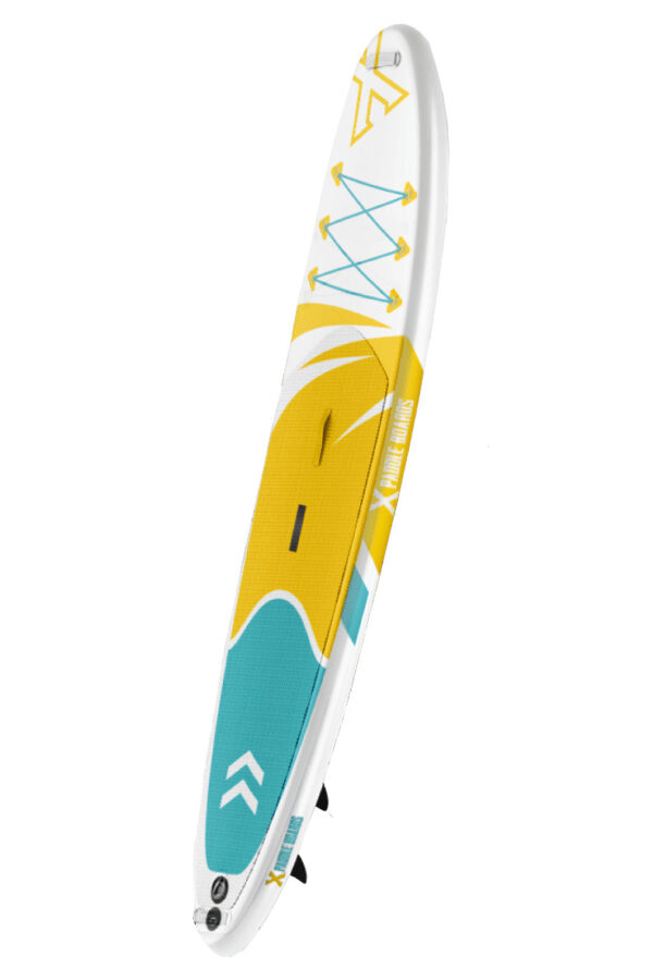 The X3 is the 3rd SUP in our latest range with the aim of producing excellent quality paddles at an attractive price (under 300e) while offering performance worthy of the best paddles. This X3 comes with a fresh and sunny design that does not go unnoticed without doing too much!