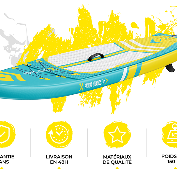 Sa légèreté ( moins de 8kg) lui permet aux enfant de transporter le paddle dans leur sac sans se casser le dos.