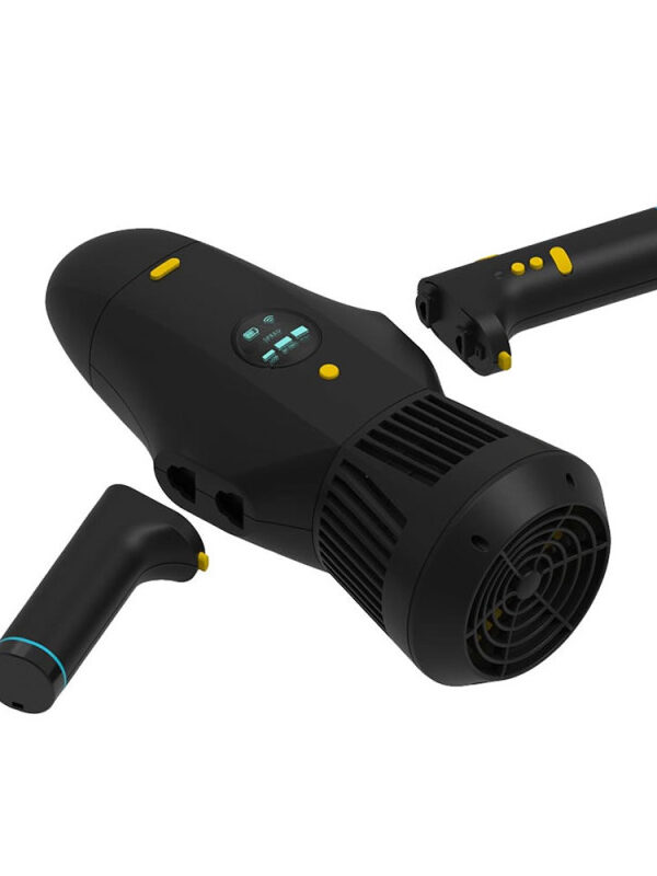 Ce propulseur est équipé d une batterie lithium qui vous permettra de naviguer jusqu’à 1 heure suivant la vitesse choisie et est équipé d’un écran LED qui vous indiquera la batterie restante, le signal WIFI et les 3 différents modes de vitesse.